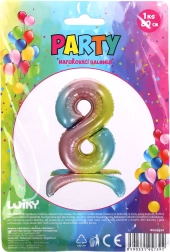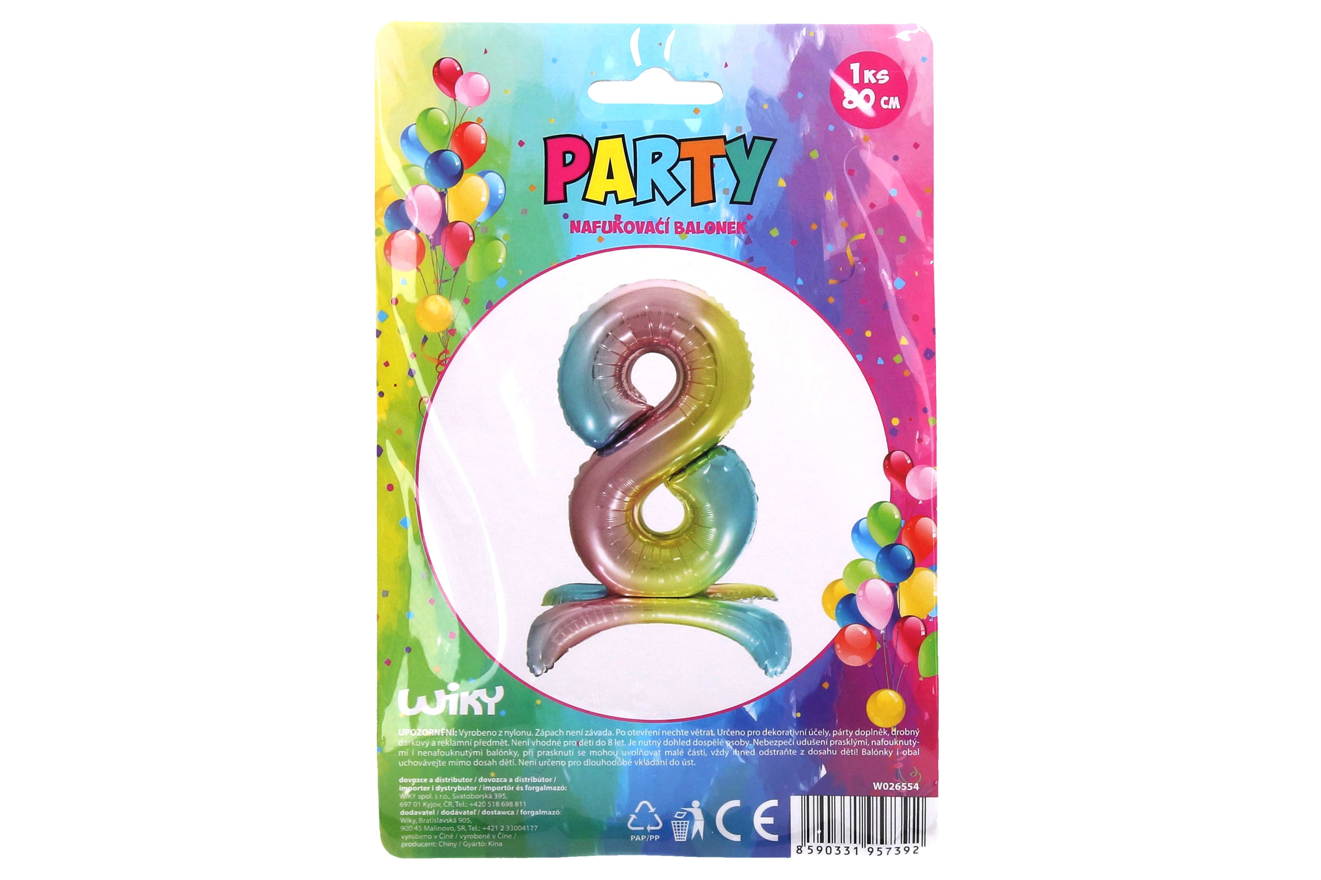 Оживете своето тържество с цветен акцент. Фолио балонът цифра 8 в дъгово изпълнение впечатлява с ярки цветови преливания и след напомпване създава доминиращ елемент от украсата. Идеален за осми рожден ден, годишнина или комбиниране на няколко цифри.