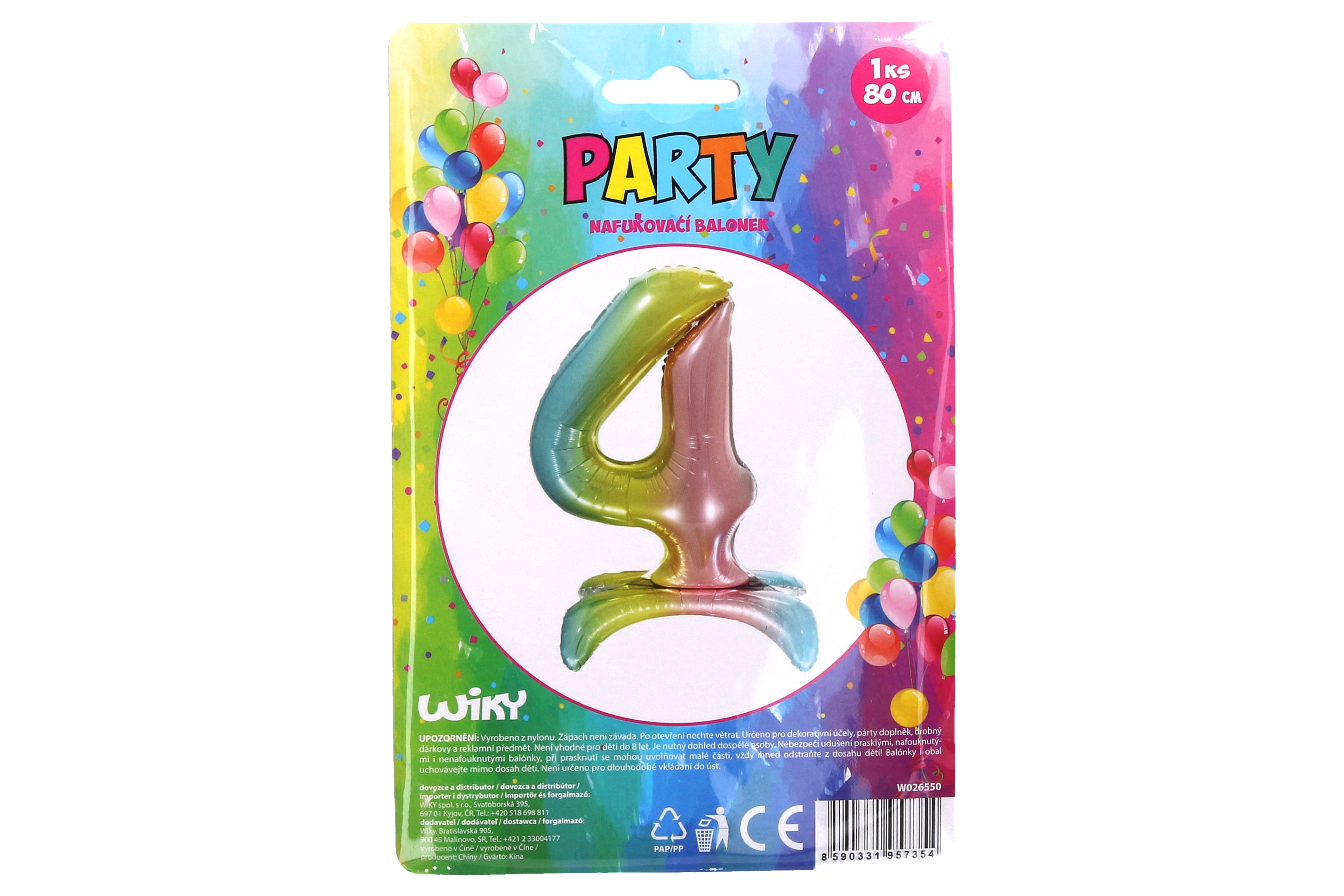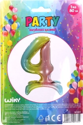 Оживете празника си с дъгов балон във форма на число 4. Големият формат се вижда отдалеч, а цветният прелив създава атрактивен ефект, който чудесно пасва на модерна украса за рожден ден или юбилей.