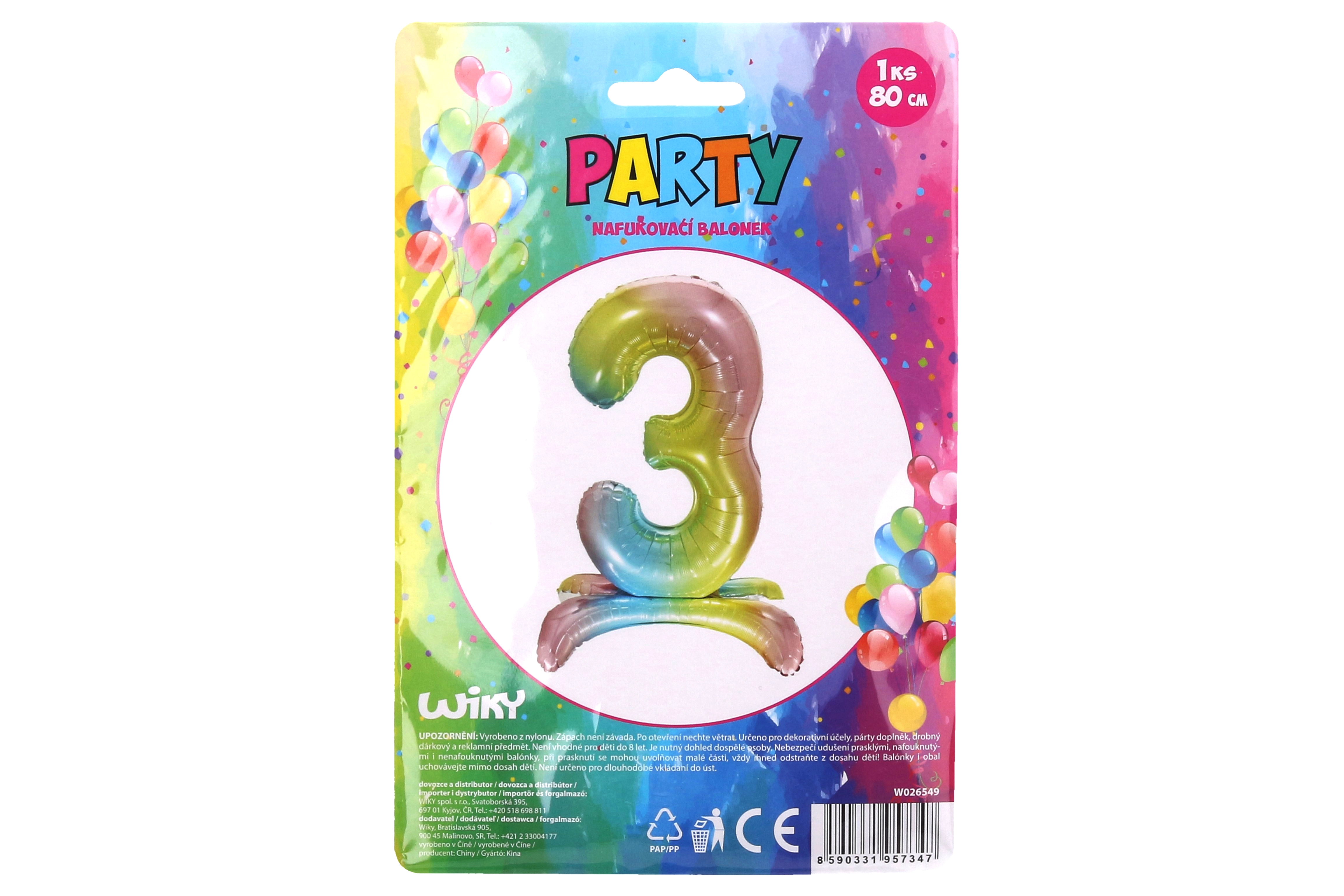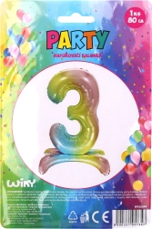 Този дъгов балон във формата на цифра 3 е перфектен избор за рожденни дни и други специални поводи. Неговите ярки дъгови цветове и размер 80 см го правят забележим елемент от декорацията, който изглежда страхотно на снимки.