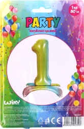 Стилен фолио балон във форма на цифра 1 в дъгови цветове, който придава на вашите празници уникална визия. Идеален за рождени дни, годишнини и фотокътчета. Благодарение на големия размер от 80 см изпъква отлично и създава ефектна декорация.