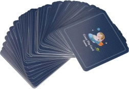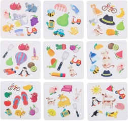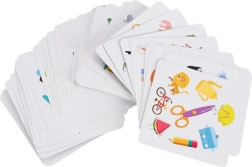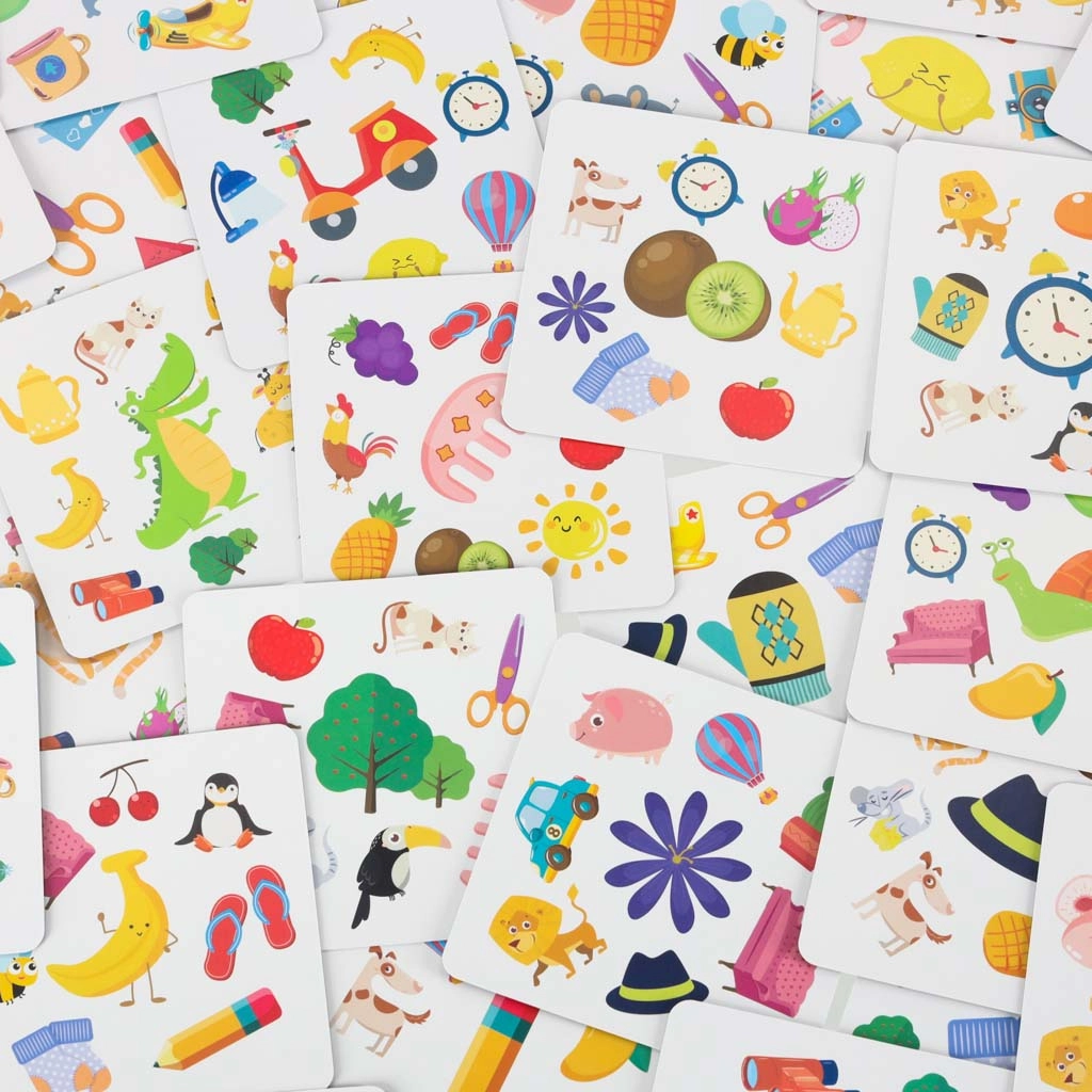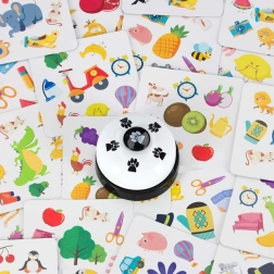 - Как се играе (пример): Всеки играч взема по една карта, пакетът се поставя на масата. Обърнете горната карта от пакета и търсете общия образ със своята карта. Който го открие пръв, звъни и взема картата към своята купчинка. Продължете до изчерпване на пакета.