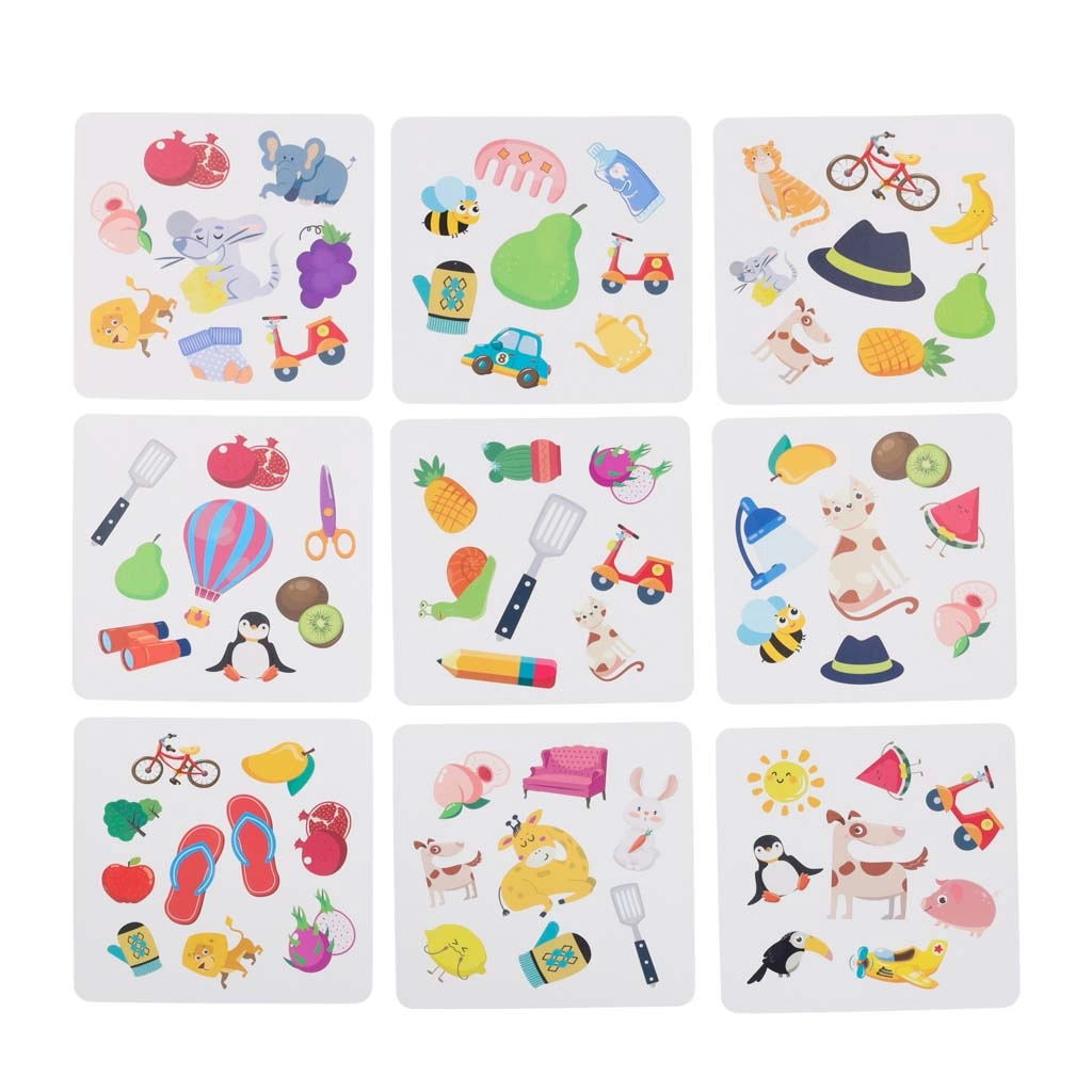 Бърза игра за наблюдателност с карти за деца и възрастни, в която винаги търсите един общ образ между картите. Комплектът съдържа 54 здрави карти с ярки илюстрации и настолен звънец, с който играчът сигнализира правилно намереното съвпадение. Страхотен избор за семейни вечери, развитие на наблюдателността, концентрацията и бързите реакции.