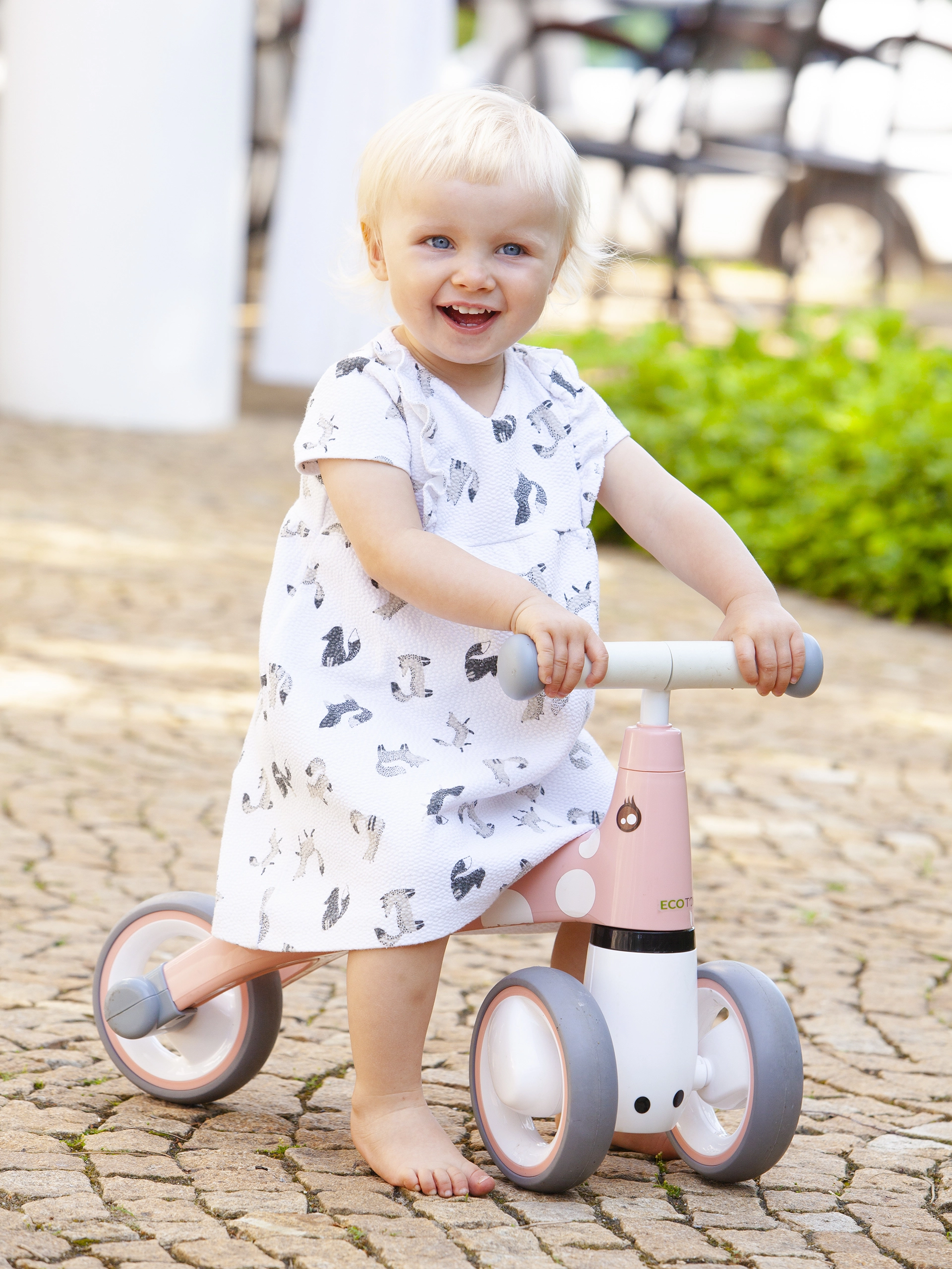 Колелото за бутане „Flamingo“ е разработено за най-малките деца, които започват своето велосипедно приключение. Предназначено е за деца от 12 месеца, които вече са направили първите си стъпки. Карането на колело за бутане помага за развиване на моторната координация и поддържане на равновесие. Позволява развиване и на други умения като качване, слизане и отблъскване с крачета. Самото каране осигурява часове забавление!