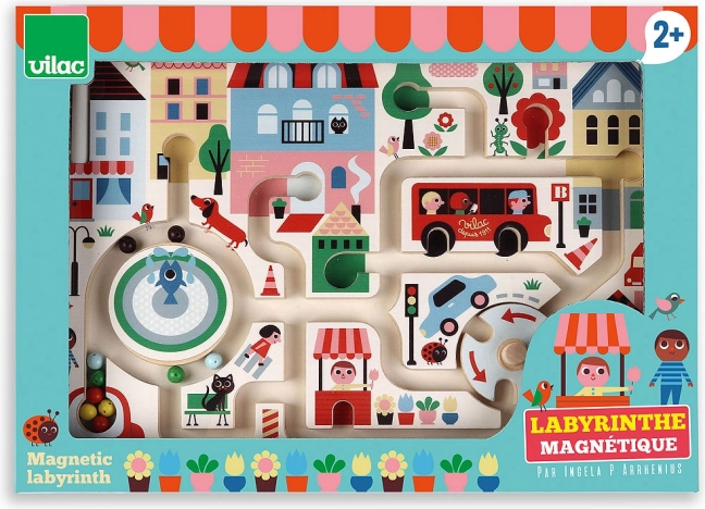 Магнитният лабиринт насърчава детското въображение и креативното мислене чрез водене на топченцата из града.