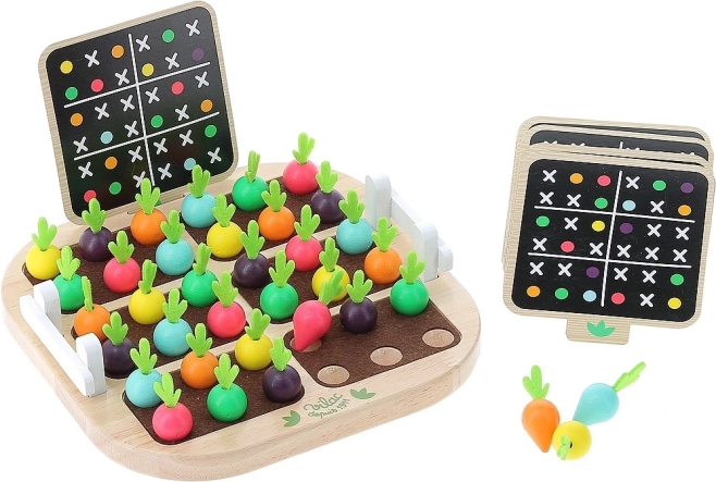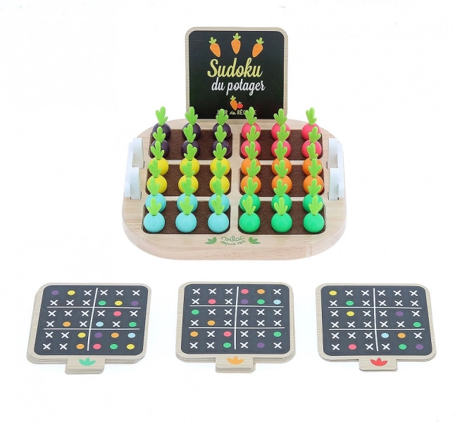 Дървеното Зеленчуково Судоку е креативна и цветна игра, която помага на децата да развиват логическо мислене и концентрация. Целта е дървените зеленчукови елементи да се поставят в правилните полета според картите и като се спазват правилата на судоку, като играта предлага забавление за всички възрастови групи.
