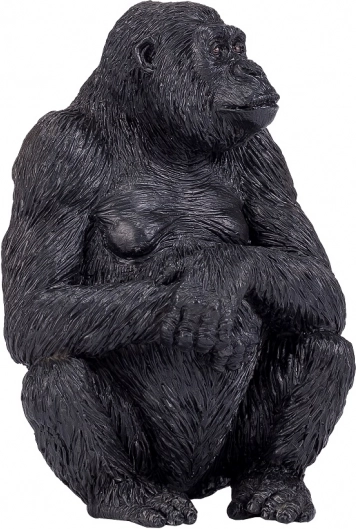 Тази реалистична фигурка на горила е създадена по образа на истинска женска горила и се отличава с прецизна изработка. Благодарение на ръчното оцветяване и детайлната текстура на козината изглежда много автентично и е идеална за игра, обучение и изложение.