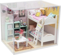 Открийте чара на миниатюрите с креативния конструктор Cherylin. Този детайлно изработен комплект предлага уютна стая с двуетажно легло, библиотека и аксесоари, която сами ще сглобите, залепите и украсите. В комплекта има LED осветление, защитно плексигласово покритие и подробни инструкции. Страхотен избор за релакс, развитие на фината моторика, въображението и търпението.