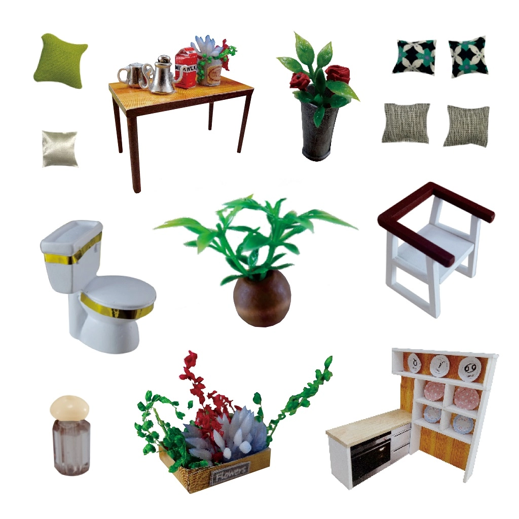 Насладете се на различни декоративни елементи, като рафтове с миниатюрни предмети и други детайли.