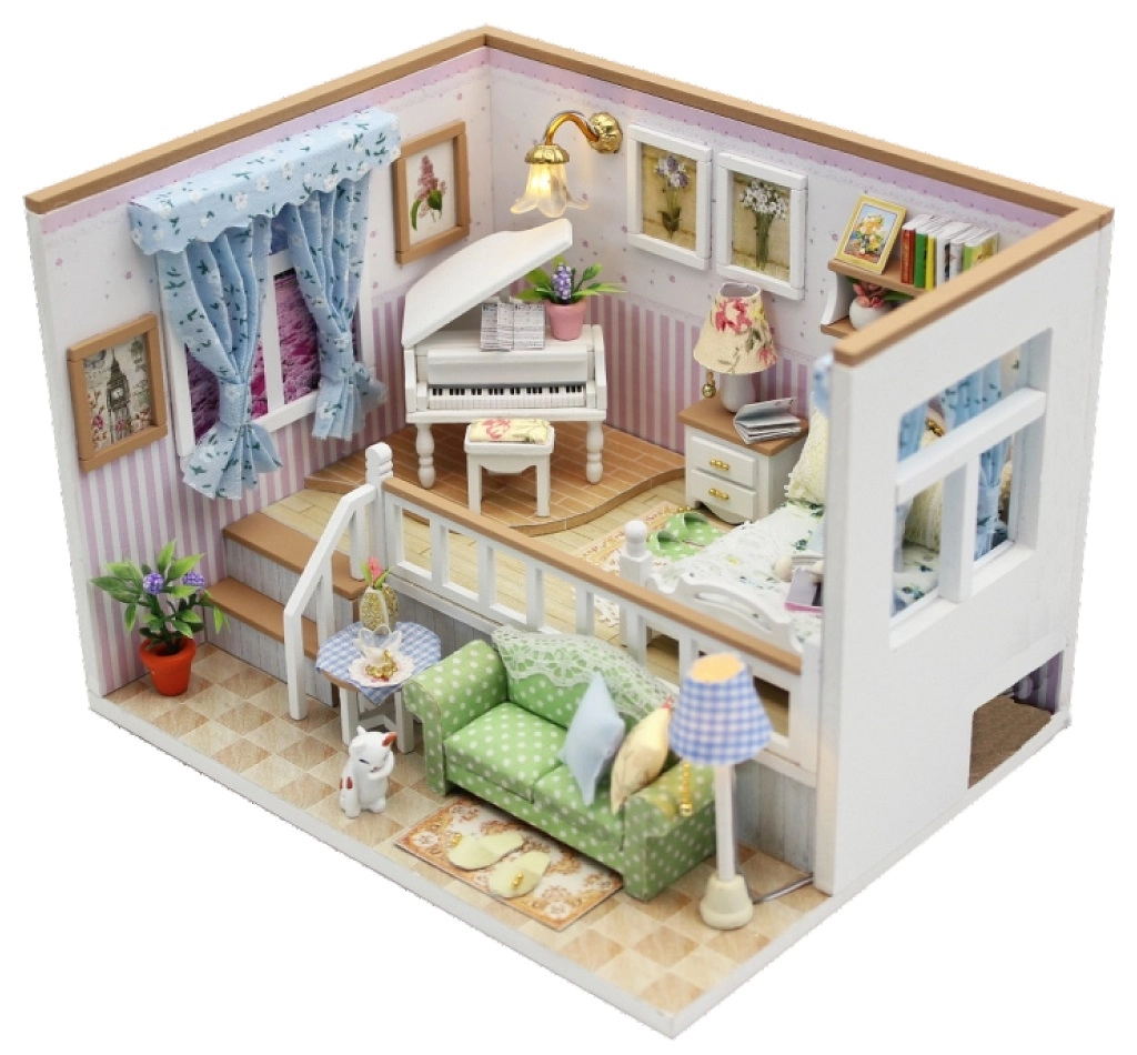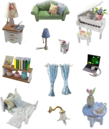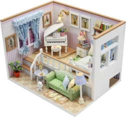 Създайте собствен миниатюрен интериор, изпълнен с реалистични детайли – удобен диван с възглавнички, елегантно пиано, легло с текстилно обзавеждане, лампи, рафтове и фини декорации. Интегрираното LED осветление придава на сцената уютна атмосфера и превръща творението ви в уникална декорация за рафт или бюро.