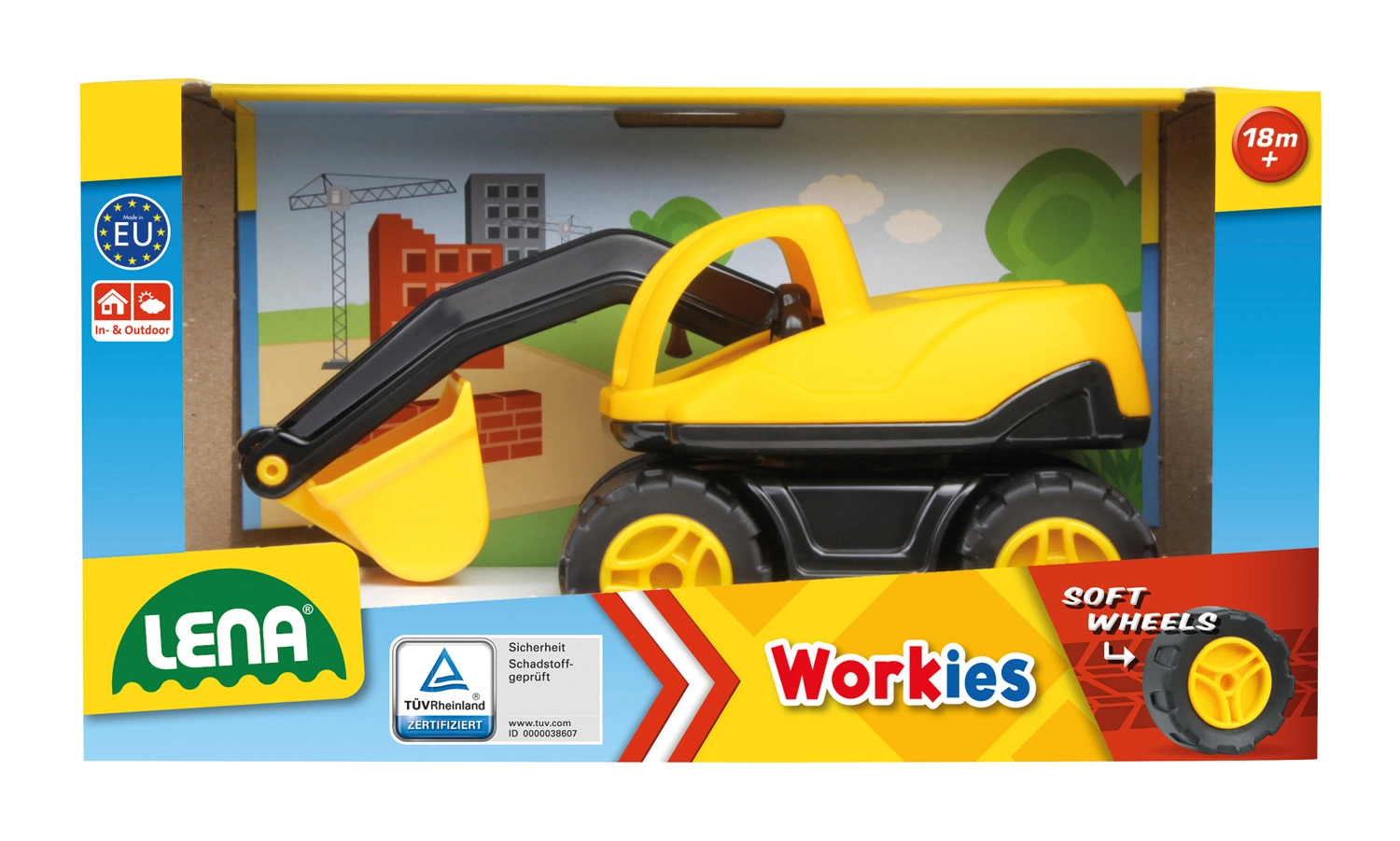 Багерът LENA Workies е идеалната играчка за малки строители. Здравата конструкция от ABS пластмаса издържа на всекидневна игра у дома и навън, а гумираните колела осигуряват плавно движение по различни повърхности. Благодарение на компактния размер се държи лесно и от най-малките деца.