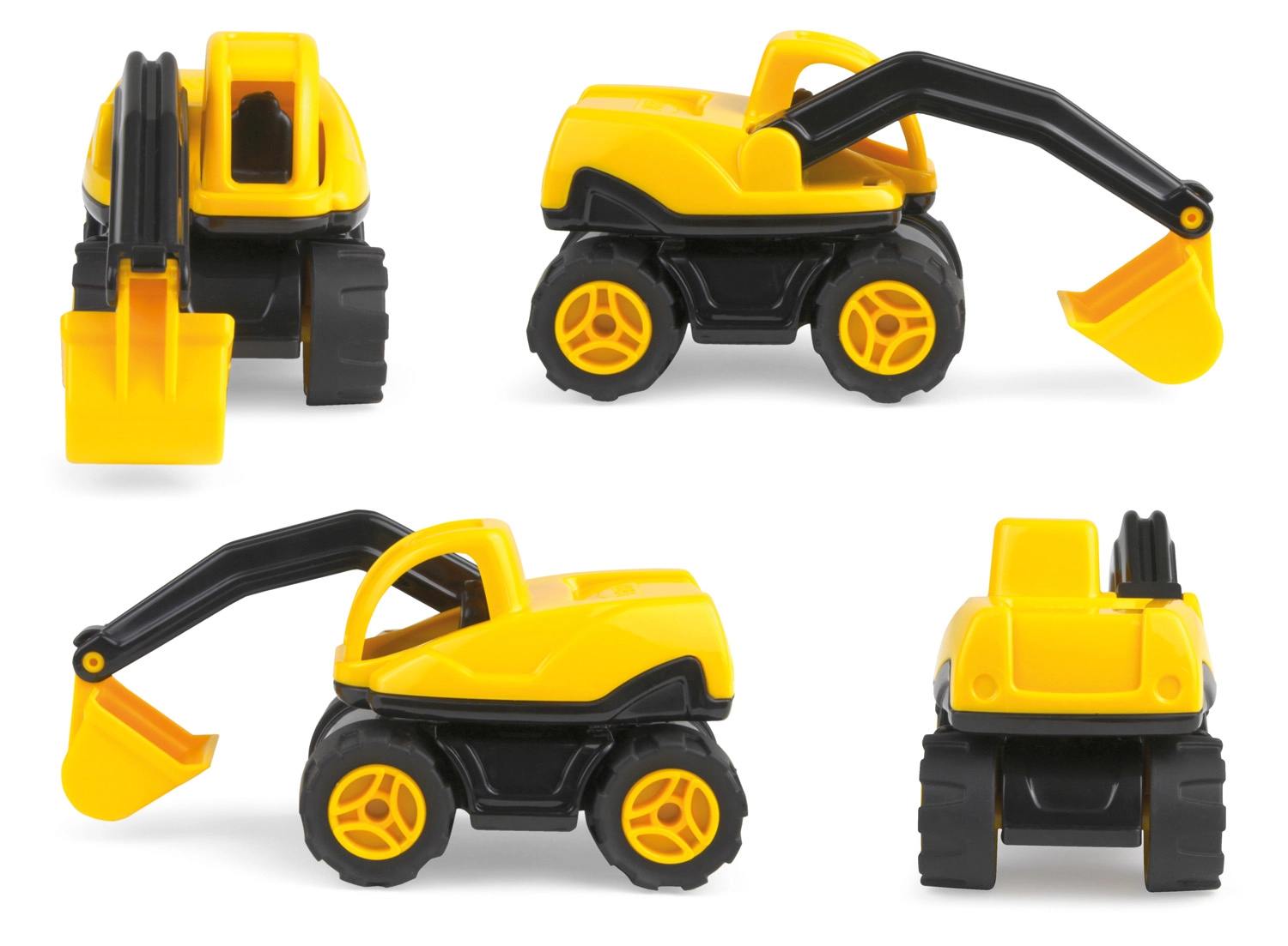 Малък, но практичен багер за първите строителни приключения. Изработен от здрав ABS пластмаса с гумирани колела и подвижна стрела за реалистична игра. Компактното 13 см изпълнение приляга отлично в детската ръка и стимулира креативността и въображението.