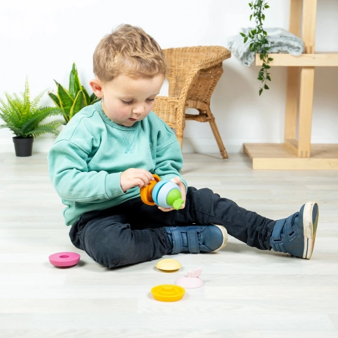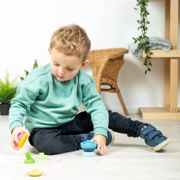 Подреждането и сортирането на частите развиват захвата, координацията око–ръка и концентрацията. Идеална активност за деца от 1 годинка.