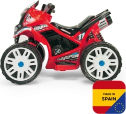 Прецизната испанска изработка на марката Injusa гарантира надеждност и дълъг живот на продукта. Красивият дизайн е допълнен от предни светлини и здрава конструкция. В комплекта са включени не само четириколесният мотор, но и батерия и зарядно, което дава възможност за незабавна употреба от родители и деца.