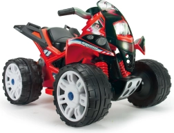 Освен това децата могат да се наслаждават на каране със скорост до 4–5 км/ч, под наблюдението на възрастни благодарение на интегрираните елементи за безопасност като електрическата спирачка, която спира четириколесния мотор при отпускане на педала на газта.