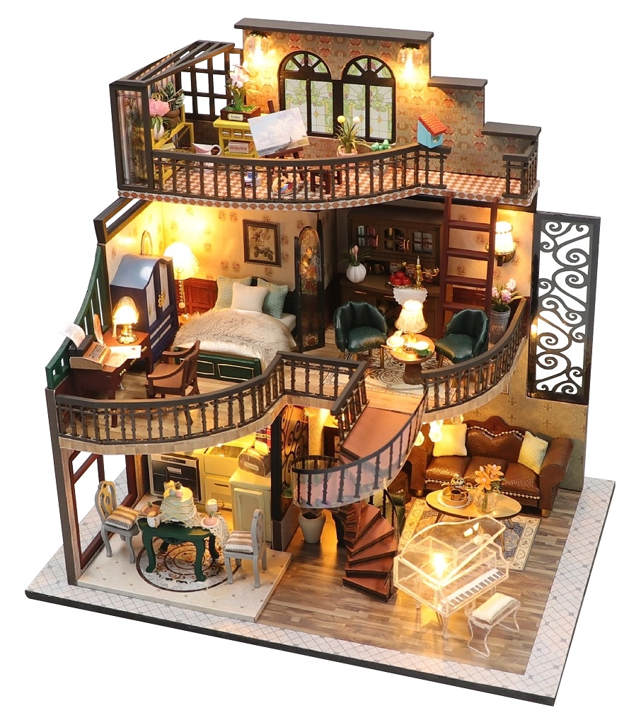 Сглобете детайлна мини къщичка и се насладете на часове забавно творчество. Всеки елемент – от мебелите до малките декорации – е премислен до последния детайл. След включване на LED светлините моделът придобива уютна атмосфера, която изпъква на рафт или работно бюро.