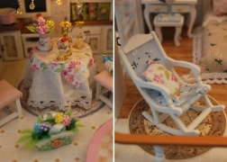 Двуетажната вила със спалня, всекидневна и кухня в нежни цветове очарова с богато оборудване и реалистични аксесоари.