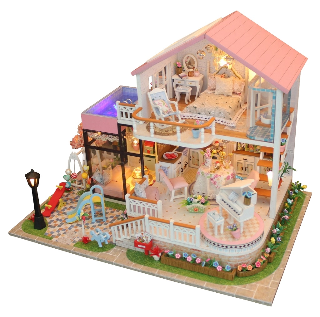 Открийте чара на миниатюрите с този детайлен комплект за сглобяване на сладка вила, който ще зарадва любителите на творенето и декорацията. Сглобете свой собствен малък дом с мебели, аксесоари и функционално LED осветление. Комплектът развива фината моторика, търпението и креативността, а след завършване се превръща в красива интериорна декорация.