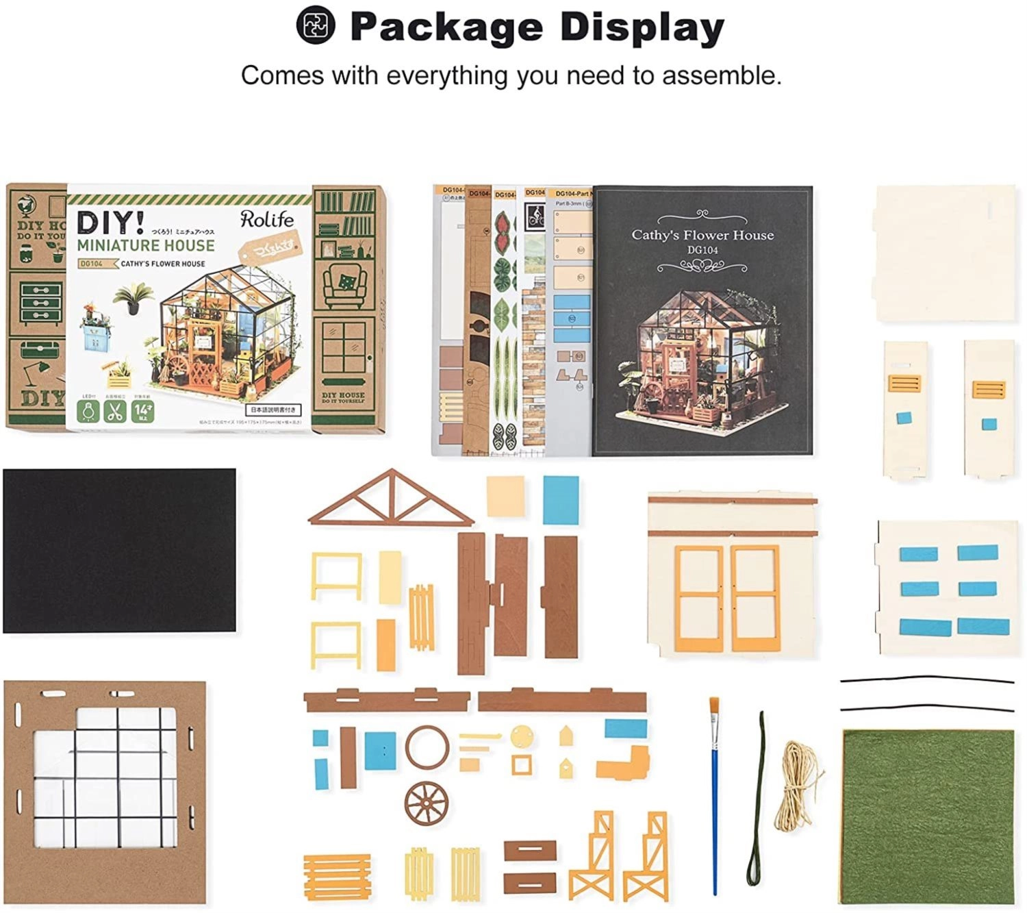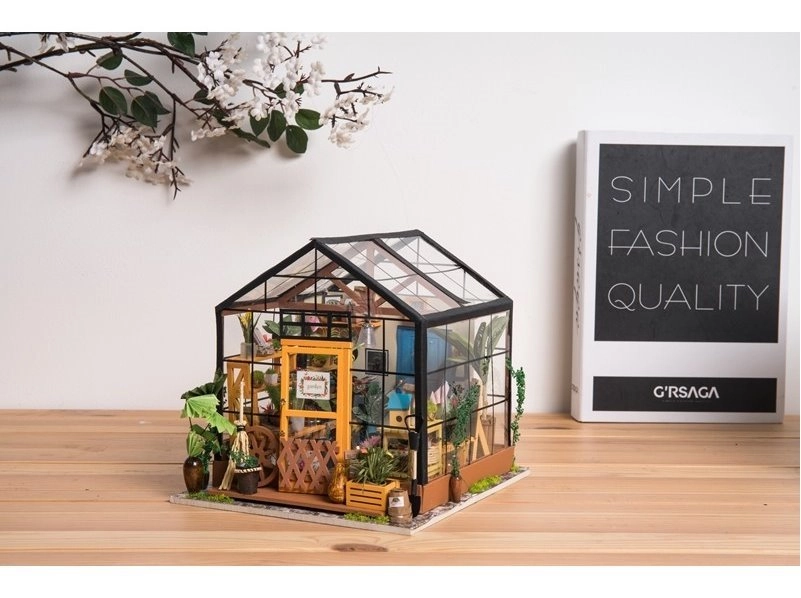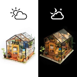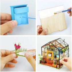 Миниатюрната оранжерия от ROBOTIME е детайлен арт комплект за сглобяване, с който ще се насладите на приятни моменти на творчество и ще създадете уютна декорация с LED осветление. Комплектът съдържа всичко необходимо за сглобяване – лепило, бои, четка и дребни инструменти. Моделът се отличава с богати детайли, реалистичен вид и релаксиращо изживяване по време на изработка.