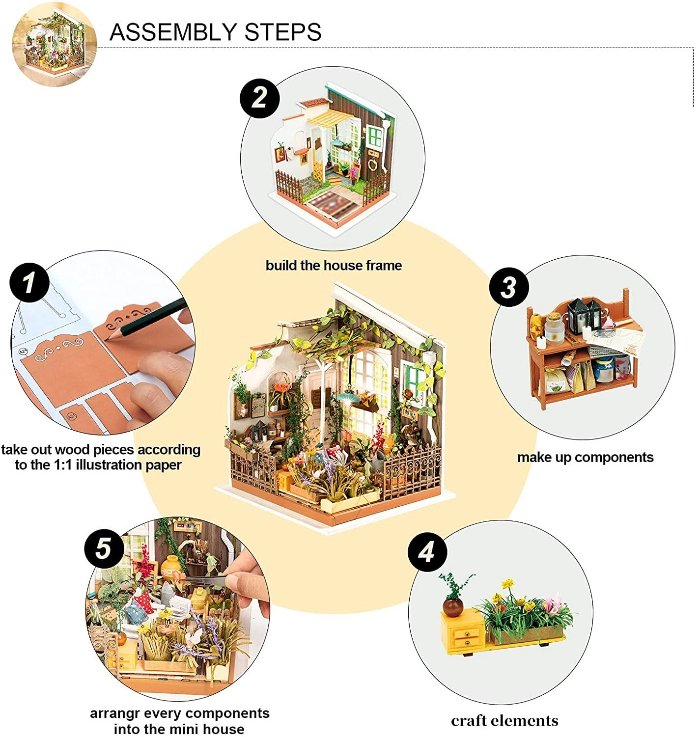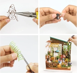 Открийте чара на детайлните миниатюри с DIY комплекта RoboTime – градинска тераса. Насладете се на креативен релакс по време на сглобяването и получете декорация, която придава на интериора ви уютна атмосфера. Включени са LED осветление на батерии, пълен комплект инструменти и материали и подробни инструкции – нужно е само да добавите ножици и да започнете да творите.