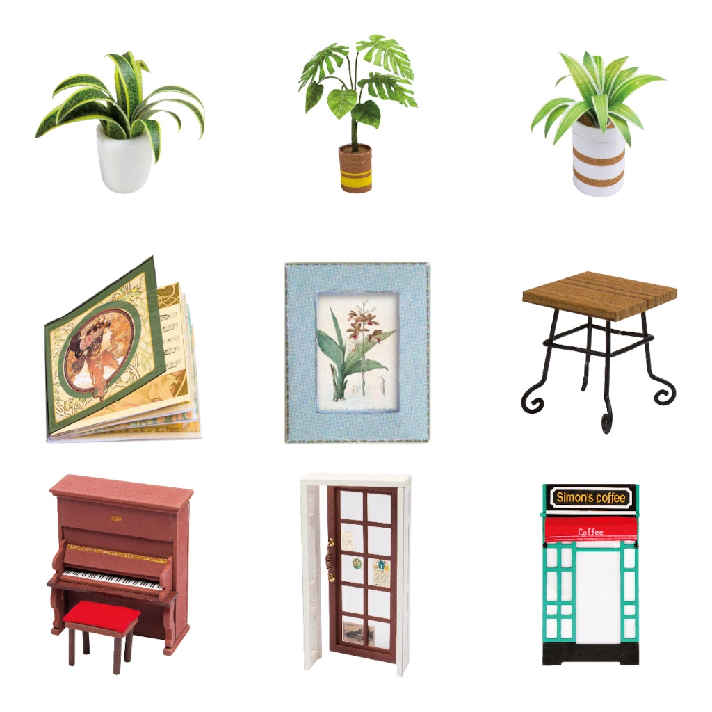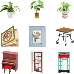 От мебели и растения до пиано – комплектът съдържа множество миниатюрни елементи за максимална автентичност.