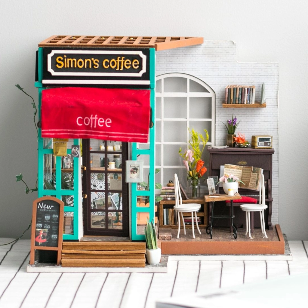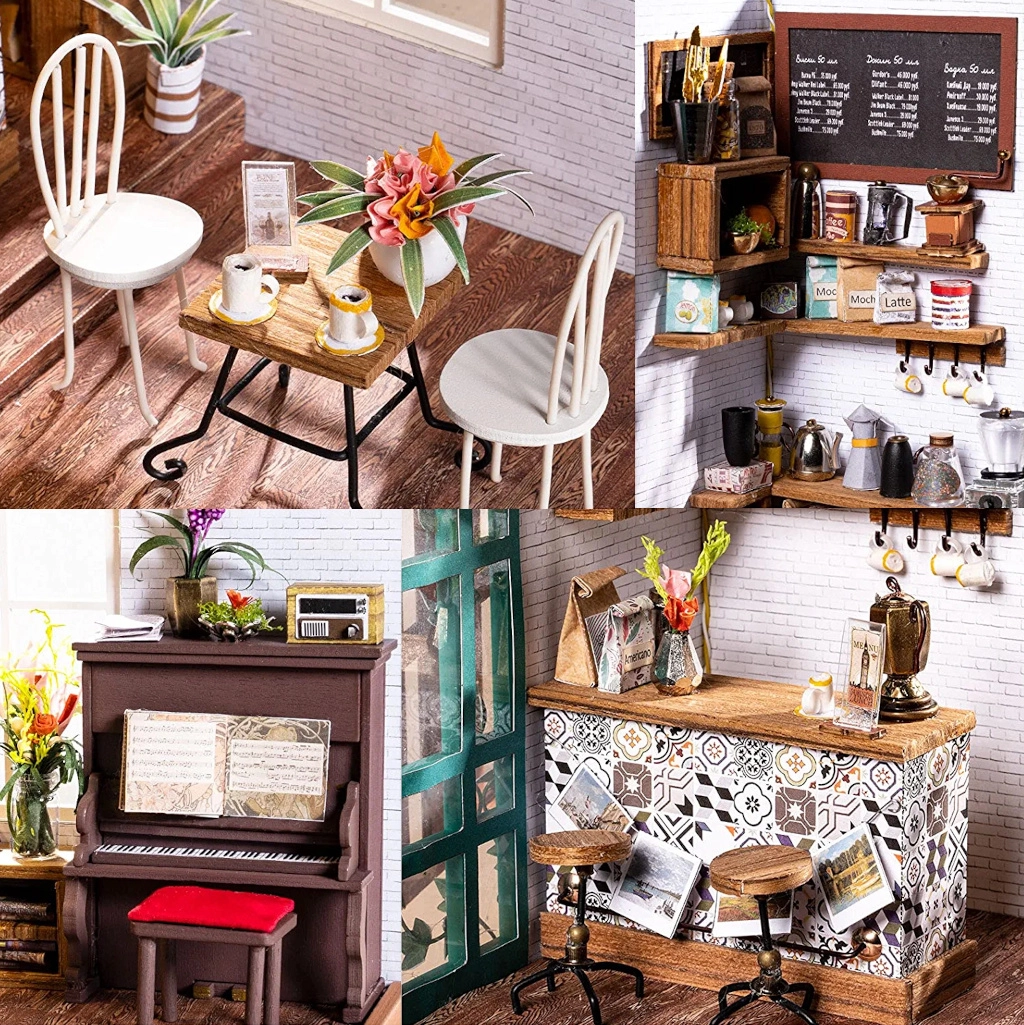 Открийте света на творческите комплекти, където всяко парче се създава на ръка. Миниатюрното кафене се отличава с богато оборудване, автентични текстури и LED светлина, която създава приятна атмосфера. Идеален като подарък за креативни личности и като стилна домашна декорация.