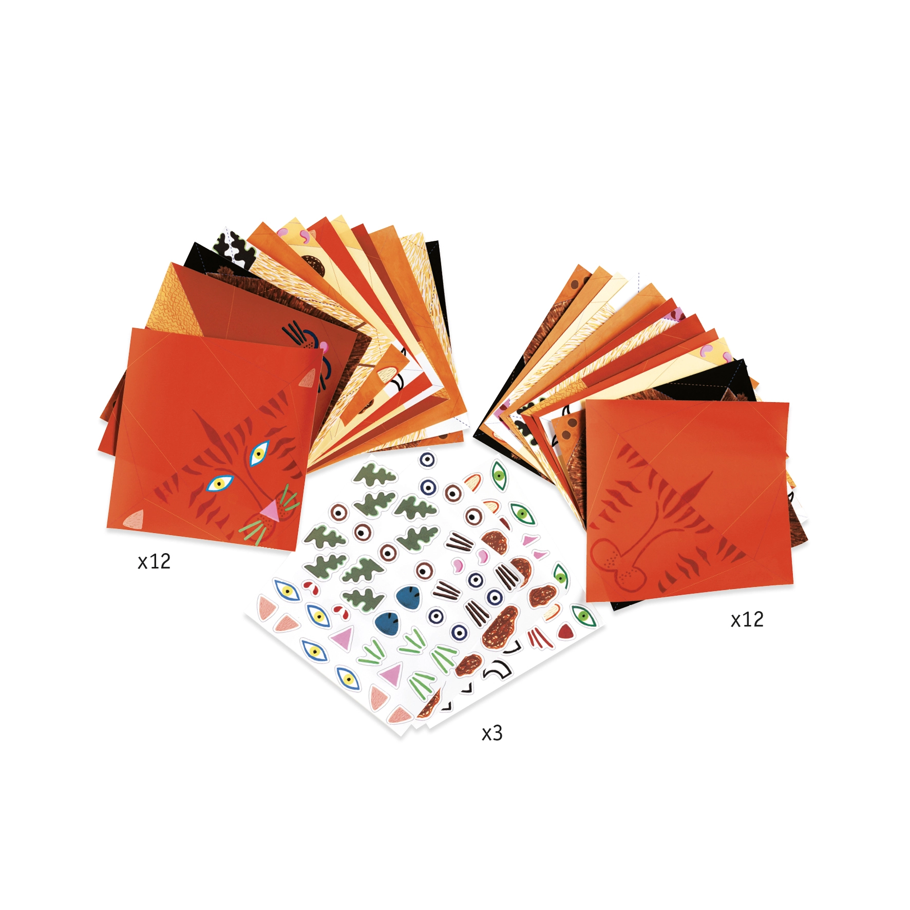В комплекта са включени 24 цветни листа за създаване на 4 серии по шест животни, 3 листа със стикери и подробно илюстрирано ръководство. Благодарение на ясните стъпки сгъването е лесно дори за по-малки деца.