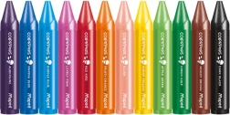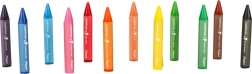 Безопасни восъчни пастели за деца от 1 година, комплект от 12 цвята. JUMBO триъгълна форма Ø 13 mm за правилен захват, хартиена обвивка срещу изцапване на ръцете, интензивни цветове и меко рисуване, нетоксични.