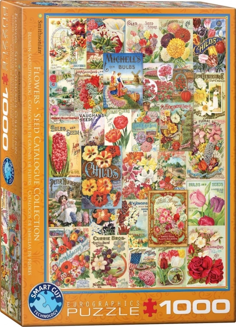Открийте предизвикателството и красотата с този висококачествен пъзел EUROGRAPHICS с мотив каталог на семена на цветя от 1000 части. Благодарение на необичайните форми на елементите и нестандартната щанца ще се насладите на по-сложно и по-забавно подреждане. Компактната квадратна кутия и формат след подреждане около 48 × 68 cm го правят чудесен подарък за любителите на пъзели и цветя.