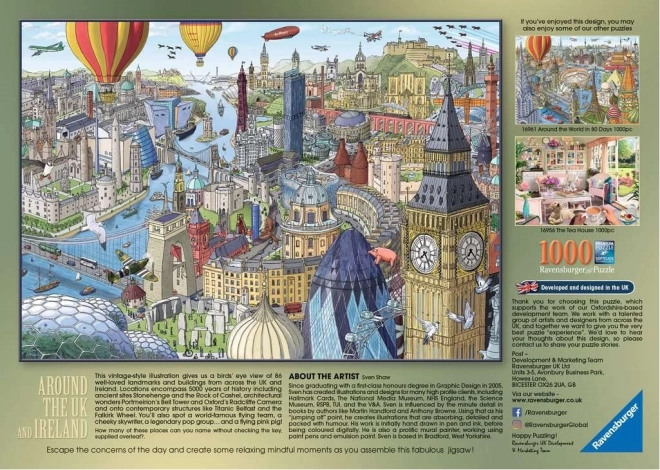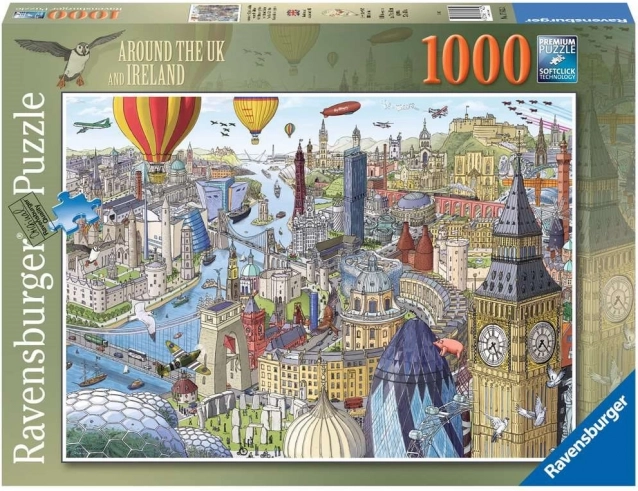 Пъзелът RAVENSBURGER „Около Великобритания и Ирландия“ предлага детайлен мотив на картата на Британските острови. Благодарение на първокласната изработка ще се насладите на гладко съединяване на частите, антиблясъчна повърхност и наситени, верни цветове, които превръщат подреждането в истинско удоволствие.