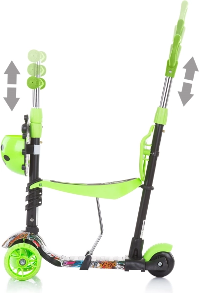 - 3 начина на ползване: с водеща дръжка, като колело за бутане, като тротинетка
