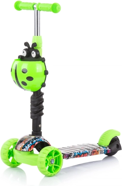 Предните колела с цветни LED светлини повишават видимостта и забавлението, триколесната стабилност и задната стъпкова спирачка осигуряват безопасно спиране.