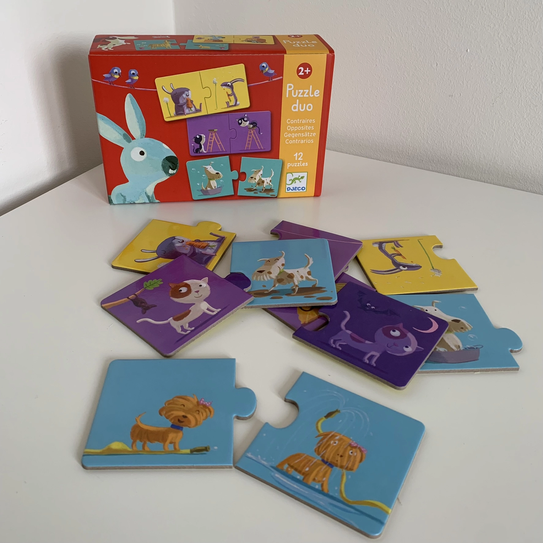 Играчките DJECO са чудесни за развитие на детската фина моторика, пространствена ориентация и внимание. Пъзелът „Противоположности“ ще се хареса на децата, които благодарение на цветните изображения и забавния характер бързо ще се научат да разпознават разликите и противоположностите.