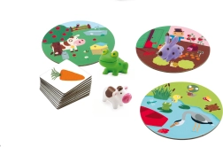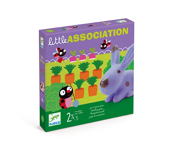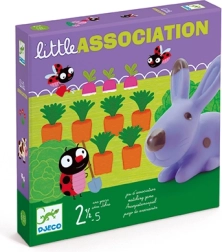 Играта Djeco Малка асоциация е идеален избор за първи настолни игри. Децата прикрепят животни към среди или предмети на картите – например зайчето към моркова, рибката към езерото или калинката към поляната. Простият принцип подпомага бързото вземане на решения и естествено развива познаването на света около нас.