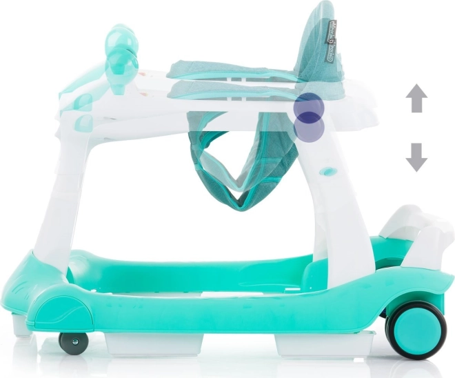 Многофункционална детска проходилка 2в1 за деца до 12 кг подпомага първите стъпки, развива баланс и координация. Предлага широка основа за стабилност, 3 височини на седалката, музикален панел за сензорна стимулация и елементи за безопасност, включително 5 стопера и забавящ механизъм на задните гумени колела. Лесно се сгъва и отговаря на стандарта EN 1273.