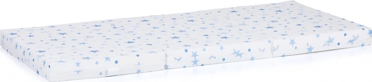 Практичен сгъваем матрак 60 × 120 см с мотив на сини звездички, идеален за детско легло и за пътуване. Предлага удобен сън, лесно сгъване и лека преносимост. Сваляемият калъф може да се пере в пералня до 30 °C, което прави поддръжката бърза и лесна.