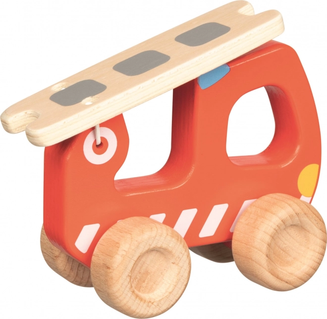 Дървената пожарна кола Goki е не само забавна, но и безопасна. Оборудвана е с функционална стълба и е предназначена за малки ръчички благодарение на отвора за лесно хващане. Играчката отговаря на строги стандарти за безопасност и е произведена с грижа за околната среда:
