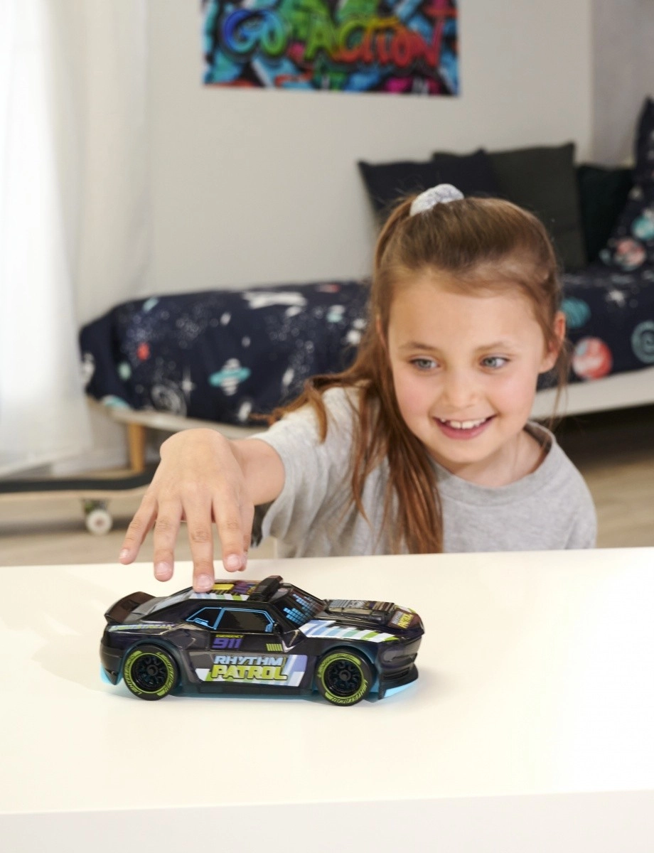Музикална полицейска кола с фрикционен двигател и LED светлини за деца, които обичат екшъна и ритъма. Моделът Streets’n Beatz с размер 20 cm предлага светлинни ефекти по целия автомобил, звук на полицейска сирена и ритмична музика за още по-забавна игра.