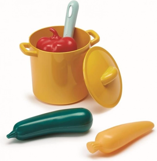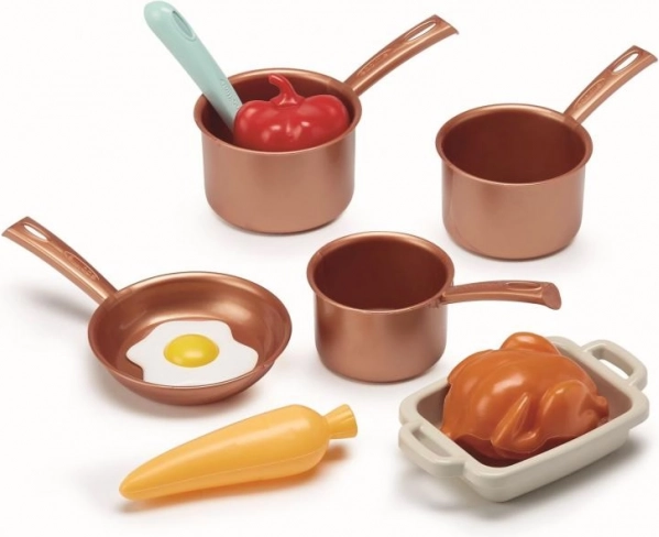 Децата обичат да имитират възрастните и с този комплект могат да се превърнат в малки готвачи. Този голям комплект съдържа всичко, от което се нуждае малкият шеф-готвач – от тигани и тенджери до цветни имитации на храни. Проектиран е за развитие на въображението и ролевите умения. Кутията, която служи и като печка, осигурява удобно съхранение и позволява лесна манипулация.
