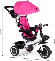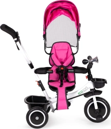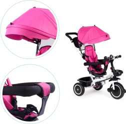 Триколката ECO TOYS е разработена за максимален комфорт и безопасност на децата. Оборудвана е с меко облегало, 5‑точкови предпазни колани и сваляеми предпазни бариери, които предотвратяват падания. Сгъваемият сенник осигурява защита от слънце и дъжд, докато въртящата се рамка и седалката позволяват лесно поставяне на детето. Благодарение на конструкцията от издръжлива стомана триколката е безопасна и надеждна.