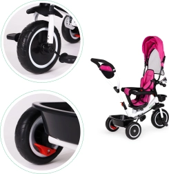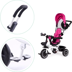 Триколката е оборудвана с предпазен борд и петточкови колани, които гарантират, че вашето дете винаги е в безопасност.