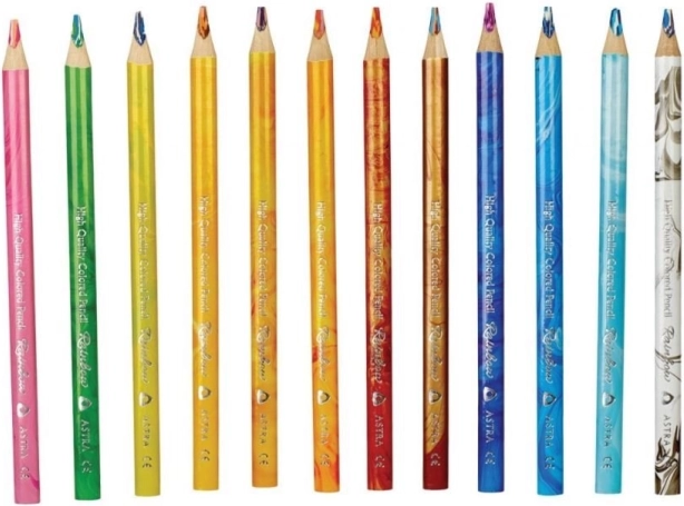 Дървени триъгълни моливи ASTRA в джъмбо размер, проектирани за удобен захват и максимална креативност. Специалното многоцветно ядро създава при всеки щрих пъстри, плавно преливащи линии без нужда от завъртане на молива. Отлични са за рисуване на вода, трева, небе или пясък, където естествените цветови преходи изпъкват.