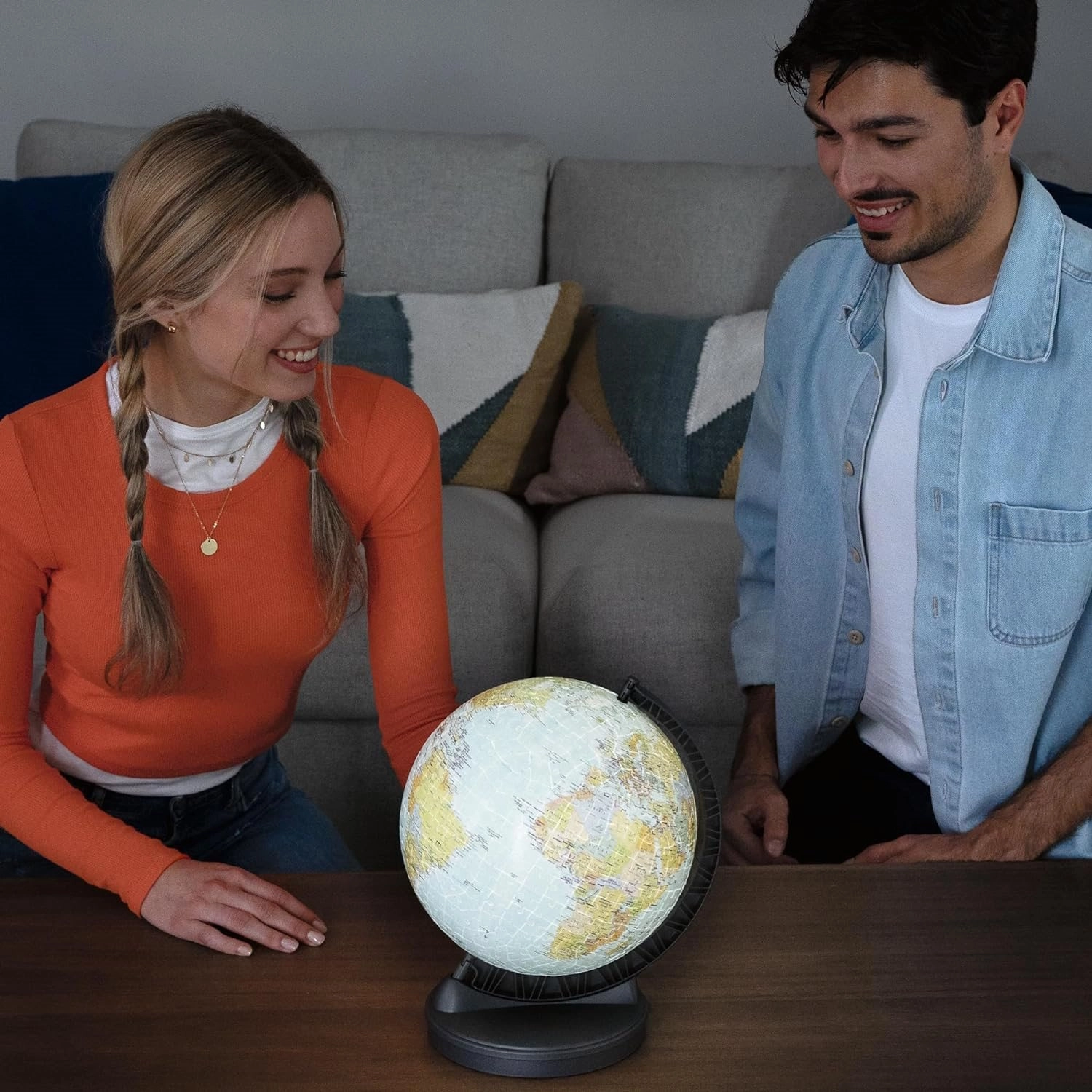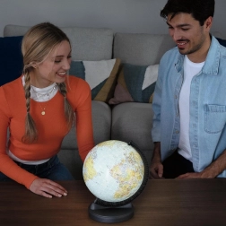 Интегрираният LED модул осветява континентите и държавите, което прави глобуса отличен за вечерно разглеждане и като стилна декорация за детска стая или всекидневна.