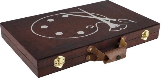 Дървеното куфарче, пълно с цветове и инструменти, е перфектният спътник за младите творци. Съдържа всичко необходимо за рисуване и скициране, в елегантна и лесно преносима опаковка: