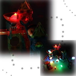 - Светещи топчета и блокове + светлинни „рефлектори“ за ефектно осветяване