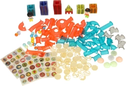 - Топчета x12; Светещи блокове x14; Магнитни квадрати x60; Магнитни триъгълници x4; Магнитни елементи с форма „E“ x4; Други елементи с различни форми x106; Фигурки x2; Стикери