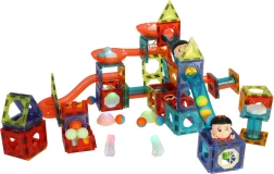 Обширен комплект магнитни конструктори за деца от 3 години позволява да се изгради впечатляващ водовъртеж за топчета, както и 2D/3D постройки. Прозрачните елементи се свързват с магнити, а част от частите светят – включително топчетата, които при движение се разгарят и създават невероятно светлинно шоу. Комплектът развива фината моторика, пространственото въображение и логическото мислене и е идеален за споделено семейно забавление.