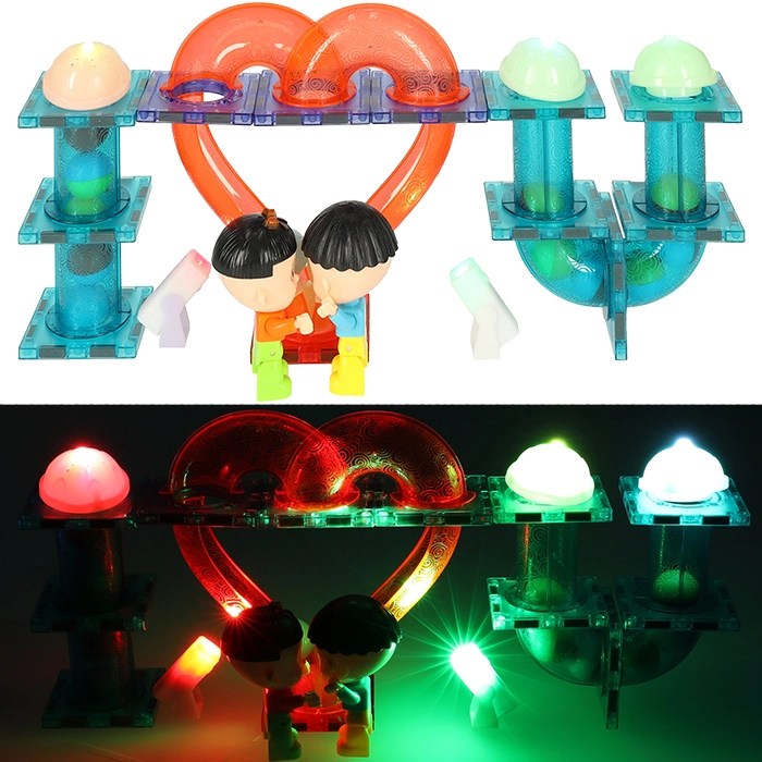 Децата могат да експериментират с форми, гравитация и скоростта на топчетата, да пробват различни трасета и да тестват конструкцията с обикновени и светещи топчета. Играта подпомага концентрацията, търпението и сътрудничеството.