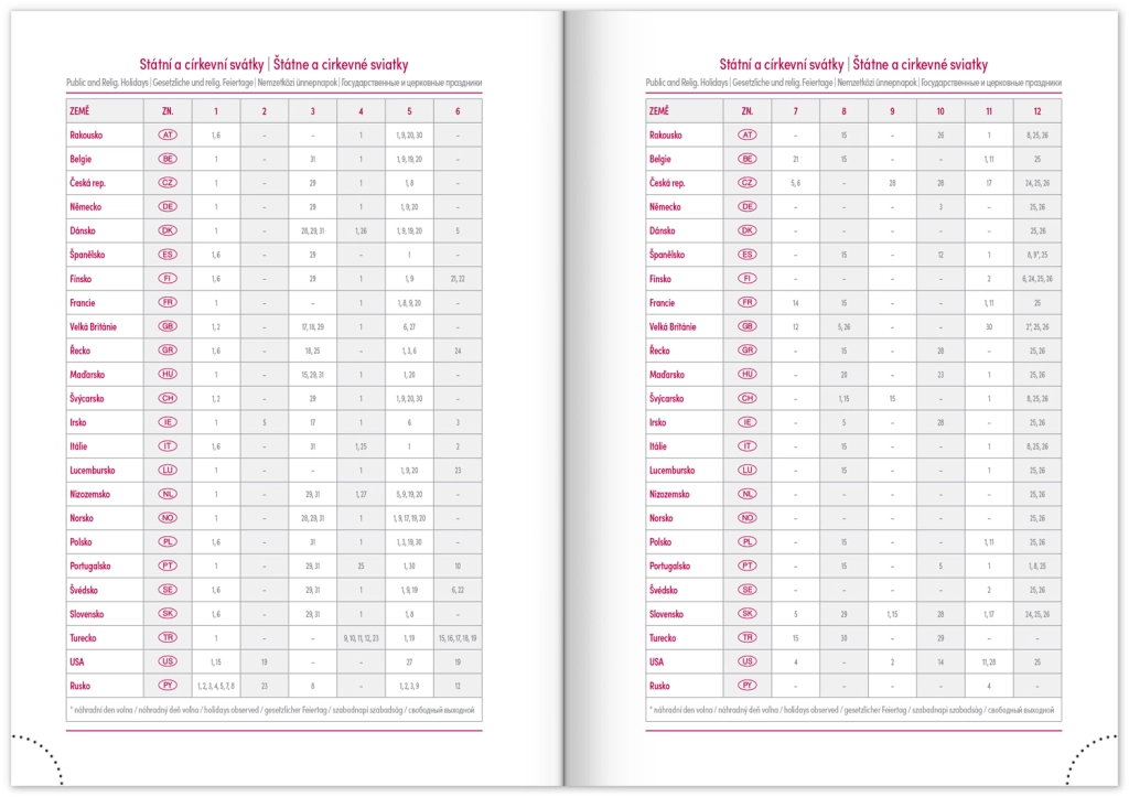 - Празници на Чешката и Словашката република и международни празници