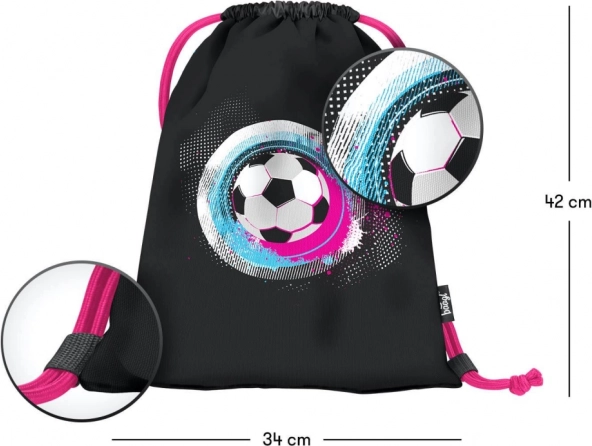 Практична спортна торба за пантофи или екип в розов дизайн Футбол от марката BAAGL. Изработена от здрав, миещ се материал и се затваря чрез стягане с устойчиви връзки, които също позволяват удобно носене на гръб.
