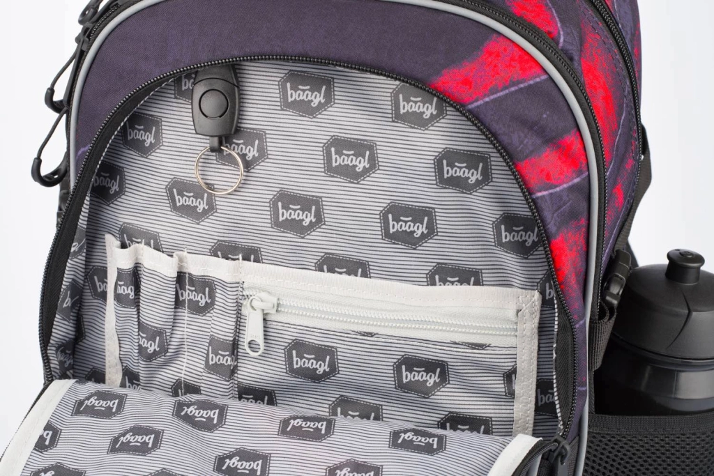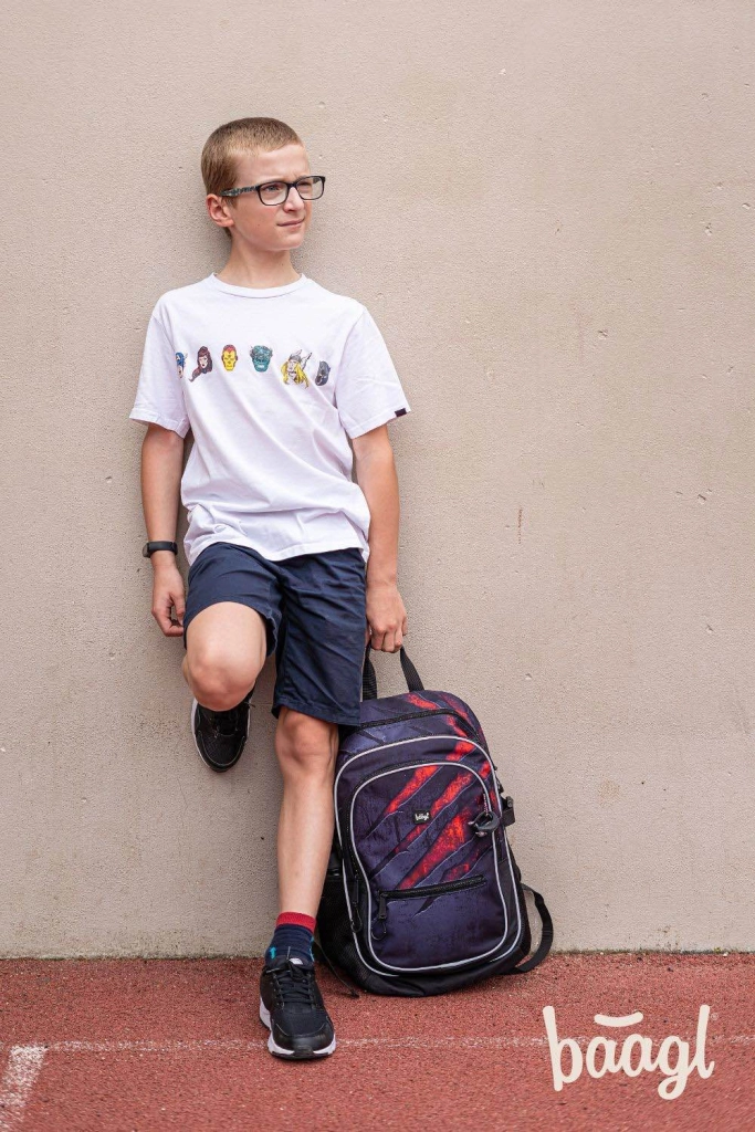 Училищният комплект BAAGL Core Лава е идеален избор за ученици, които търсят надеждно качество, ергономия и стил. Раницата с тегло само 820 g въпреки това предлага три самостоятелни отделения с органайзер, странични мрежести джобове за бутилка и защитено отделение за 15" лаптоп или таблет. Светлоотразителните елементи повишават видимостта по пътя към училище, здравият водоустойчив материал гарантира дълъг живот, а комфортът е подкрепен от регулируеми раменни, гръдни и компресионни презрамки.